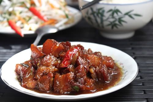 ![]() Nguyên liệu : - 300g thịt ba chỉ - Muối, hạt tiêu, đường, nước mắm ngon - Hành lá, hành hương, dầu ăn và ớt và nước màu kho thịt. Thịt ba chỉ kho tiêu- Thịt ba chỉ thái miếng vừa ăn. Ướp vào nửa thìa cà phê muối, một ít đường, trộn đều để thấm gia vị khoảng 30 phút. - Đun nóng 2 thìa cà phê dầu ăn, phi hành hương thơm, đổ thịt vào xào đều. Thịt chín, nêm vào nước mắm, đường, ớt và ít nước hàng. - Đổ nước lạnh ngập mặt thịt. Đợi thịt sôi, cho lửa nhỏ và đậy nắp lại. - Đến khi thịt mềm, nước còn hơi sền sệt, nêm nếm lại tùy theo khẩu vị của bạn. Sau đó, đổ hành lá đã thái nhỏ vào, đảo đều. Tắt bếp, rắc hạt tiêu lên bề mặt. Thịt ba chỉ kho tiêu dùng nóng với cơm trắng rất ngon. (Theo ngoisao.net) |