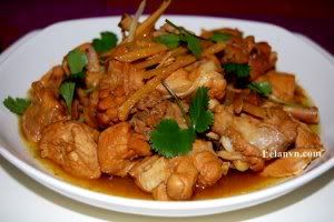 ![]() - 400g thịt gà - 1 nhánh gừng ( to hay nhỏ tùy theo khẩu vị ) - Tỏi, hành hương, dầu ăn - Gia vị: 2 muỗng canh đường, 3 muỗng canh nước mắm ngon,1 muỗng cà phê bột nêm, ớt bằm, chút nước màu, nước lạnh. Cách làm : 1. Gà rửa sạch, cắt khúc vừa miếng ăn. Gừng, hành hương cắt sợi nhỏ. 2. Ướp thịt gà với ½ lượng gừng, hành hương, đường, nước mắm và bột nêm, ớt để ngấm khoảng 15 phút. 3. Dầu, tỏi đập giập cho vào chảo phi thơm. Cho thịt gà vào xào gà trên lửa lớn cho thấm gia vị, thêm nước màu. 4. Thêm ít nước sôi, cho chỗ gừng còn lại vào kho đến khi miếng gà mềm và thấm, múc ra tô ăn với cơm và rau luộc hay rau sống, dưa leo, cà chua. Gà kho gừng là món ăn ngon rất dân dã trong văn hóa ẩm thực Việt Nam. (Nguồn :lelanvn.com) |