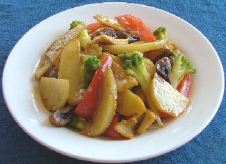 ![]() Chuẩn bị: - 1 quả cà chua, 2 củ khoai tây, 200gr nấm tươi, 1 cái hoa lơ xanh bé. - Gia vị, tiêu, đường, bột ngọt, muối, dầu ăn. Cách làm: - Khoai tây thái lát mỏng - Cà chua bổ miếng cau - Nấm ngâm nước làm sạch, thái đôi hoặc ba phần. - Súp lơ xanh thái bông nhỏ chần qua nước nóng, để ráo. - Cho 1 muỗng canh dầu ăn vào chảo đun nóng. Phi thơm hành tỏi, cho cà chua vào đảo đều, cho 1/3 thìa cà phê muối vào cho cà chua nhanh nhừ. Tiếp đến cho khoai tây vào đảo đều, bạn cho một ít nước vào xào kỹ vì khoai tây là bột nên khi xào dễ bị cháy, khi khoai tây chín bạn cho hoa lơ, nấm vào xào cùng, đảo đều và nêm gia vị cho vừa miệng. Khoảng 5 phút sau nhắc xuống, cho ra bát. Khoai tây xào nấm hoa lơ là món ăn ngon được rất nhiều người yêu thích, vừa ngon vừa không bị ngán. Chúc bạn ngon miệng! (Nguồn :tapchimonngon.com) |